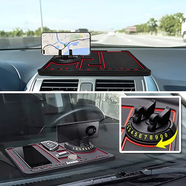 🧲 Zvýšená bezpečnost s protiskluzovým designem: Vyroben z odolného, protiskluzového PVC materiálu, udržuje nezbytnosti jako telefon, klíče a mince pevně na místě, i při ostrých zatáčkách nebo náhlých zastaveních.