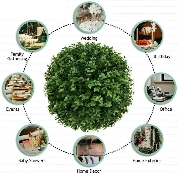 Zapomeňte na starosti s každodenní péčí o rostliny! Tyto umělé kulovité rostliny jsou navrženy tak, aby vypadaly úchvatně v jakémkoli prostředí, ať už v interiéru nebo exteriéru. Vychutnávejte si živou zeleň po celý rok bez obav z uvadání nebo vysychání. Tyto dekorativní koule na rostliny, které se skvěle hodí na zahradu, terasu, do obývacího pokoje nebo do kanceláře, pozvednou každé prostředí bez námahy!