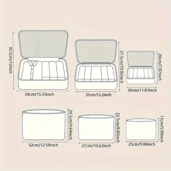 Zapomeňte na přeplněná zavazadla a zbytečně zabraný prostor! S 6dílnou sadou se balení na vaši další cestu stává snadným a bezstresovým. Můžete zabalit oblečení, boty, toaletní potřeby a další. Udržujte své oblečení úhledné a bez pomačkání na cestách!