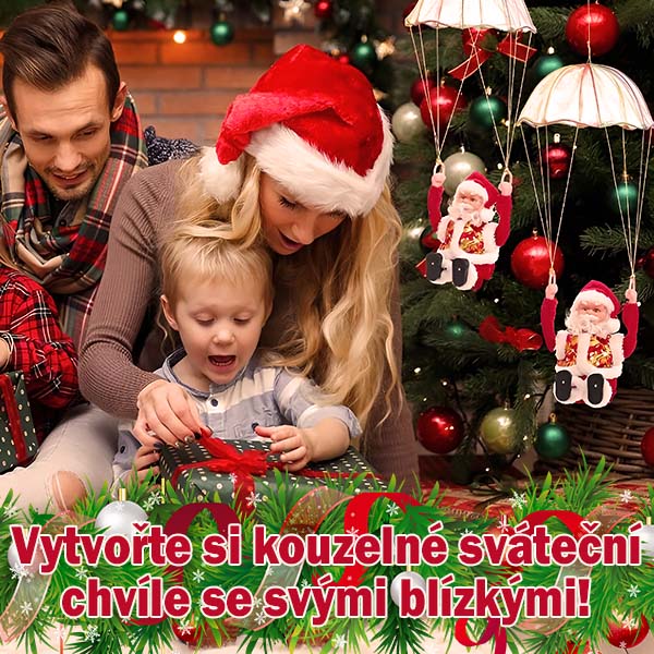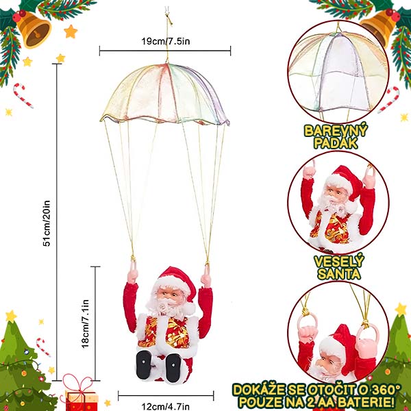 📦 Balení obsahuje: 1x Santa s padákem, 1x Háček na zavěšení