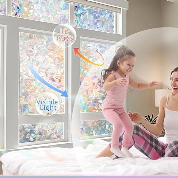 Kromě duhového efektu dodává fólie oknům vzhled matného nebo strukturovaného skla, takže vaše okna získají moderní a stylový vzhled bez nákladů na nové sklo.