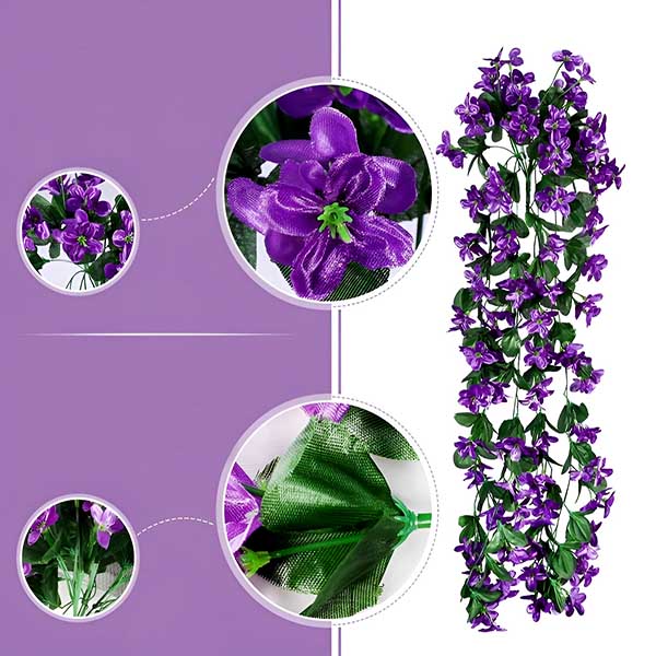 Vneste do každého prostoru nádech elegance s našimi realistickými umělými závěsnými květinami. Tyto závěsné květiny jsou vyrobeny z nádherné tkaniny připomínající hedvábí a vysoce kvalitního plastu a dodají vašemu okolí přirozený půvab.